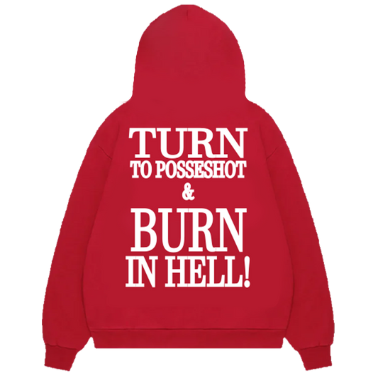 RED HOODIE WITH BARBED WIRE ARMS + HELL BACK!